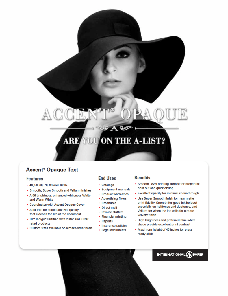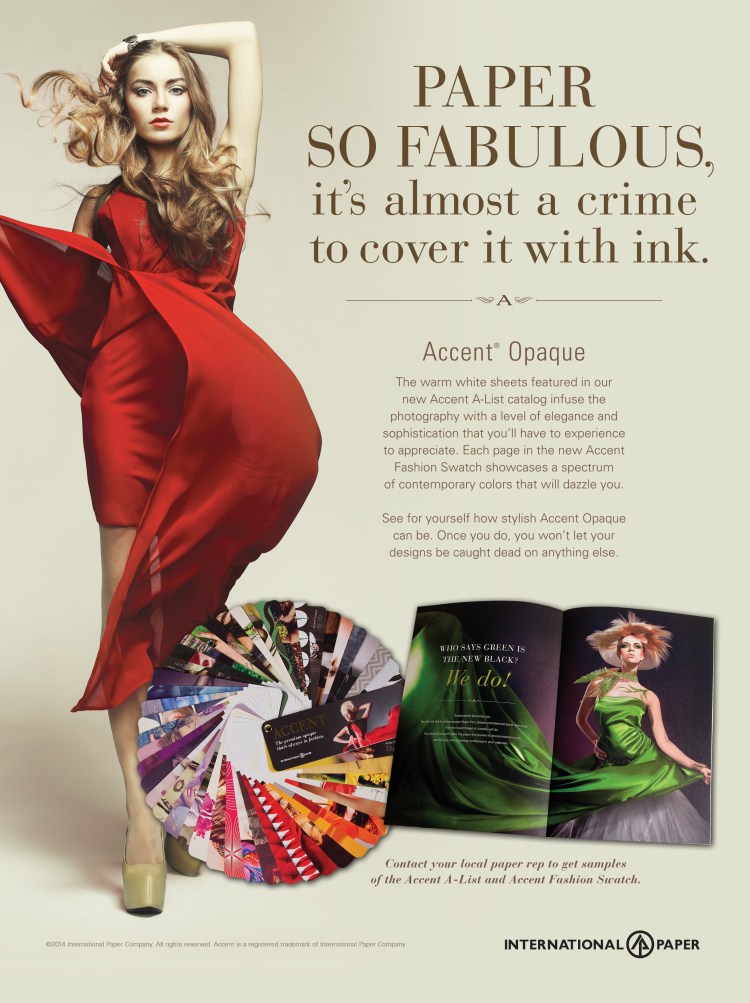 Nearly 20 years of promotions, sales materials, microsites, emails, ads, presentations, videos and pretty much anything else the world’s largest paper company might need. That included a multimedia campaign to elevate the status of the entire portfolio of Accent Opaque printing papers by challenging printers and designers to consider how the right opaque sheet can add personality to their projects. Components included print and digital ads, sales sheets, emails, swatch books, trade show materials and sales presentations.